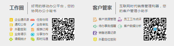 集成暢捷通云產(chǎn)品“工作圈”與“客戶管家”,實(shí)現(xiàn)通知公告、業(yè)務(wù)請示、請假統(tǒng)計(jì)、任務(wù)