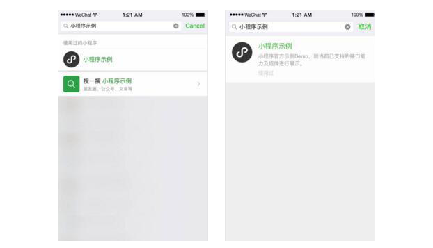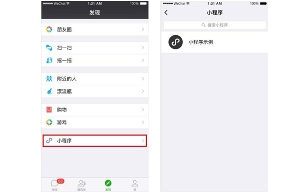 五、歷史記錄:當你使用過某個小程序后,在微信客戶端的"發(fā)現-小程序"里的列表,就可以看到這個小程序,想要再次使用它時,通過列表中的歷史記錄就可以進入。在"發(fā)現-小程序"中,也可以通過搜索進入小程序。